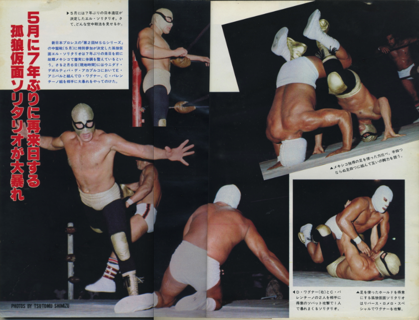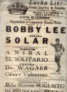 第1試合にネグロ・ナバーロが出ていて、第2試合のタッグではアルコン78とスギ・シトと戦っていた。体育館のように広くて暗い控室で初めてボビー・リーと会って話をした。その日のメインはソラールとのUWA世界ウェルター級選手権であった。その試合で私が撮ったプランチャ(ダンビングボディプレス)の写真は今もボビー・リー宅に飾られており、イホ・デル・サントが訪れた時に「これはいい写真だねえ」と褒めてくれた。セミはソリタリオ&アニバルvsドクトル・ワグナー&セサール・バレンチーノ。ワグナーが地元の応援団たちと垂れ幕を持ってグラウンドを行進して来ると、ソリとアニバルはジープのオープンカーに乗って球場へ入って来る演出。その夜はソリとセサールに誘われてバーで飲み、そこでフランス女性をナンパしてディスコに繰り出す。そうして深夜までとことん付き合い、クレイジーなアカプルコ不夜城の快楽にヘトヘトとなる。「あんなにリングで動き回り、暴れたのに、その後で何でこんなに寝ずに遊ぶスタミナがあるんだ」と正直言って呆れた。「来週も、再来週もアカプルコで俺たちの抗争が入っている。最後にはマスカラ・コントラ・カヘジェラがあるからな。だから、来週も再来週も来いよ」と言われる。アカプルコは確かに楽しいが、彼らと付き合うには体調を整えなければと思った。
