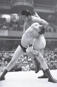 さて、アントニオ猪木は母の故郷・人吉で試合をしているのだろうか。ある。1968年10月20日、日本プロレス『ダイヤモンド・シリーズ』第23戦、人吉市文化センター。メインで馬場と組み、キラー・カール・コックス&カール・カールソンと対戦。最後はコブラツイストでカールソンからギブアップを奪い、2-0の勝利を収めている。